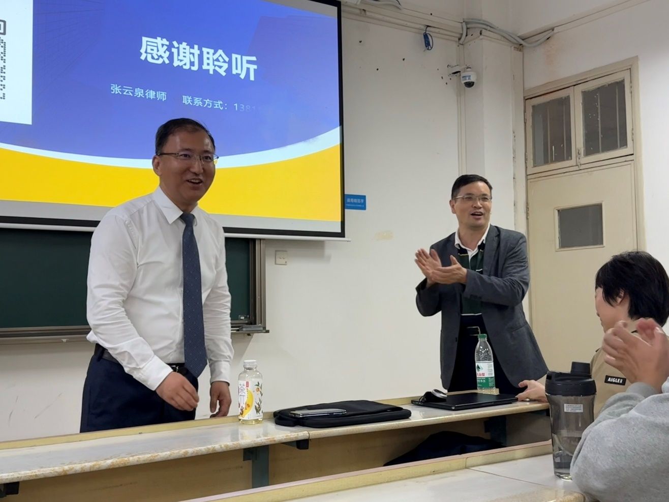 (通讯员:蔚玉莹)2025年9月29日下午,一场以“司法会计鉴定意见的质证”为主题的专题讲座在中南财经政法大学文添楼310室举行。本次课程由北京市盈科律师事务所刑民交叉法律事务部副主任张云泉律师担任主讲,任课教师徐惠老师、刘建华老师参与与谈。课堂紧扣司法实践前沿,聚焦司法会计鉴定意见的质证以及审计报告与资金分析报告展开深度讲解、深入讨论,为同学们带来了一次学术与实务的双重盛宴。
