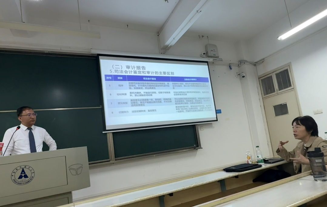 在互动环节中同学们积极提问,就“司法会计鉴定机构的资质”“鉴定意见程序合法性的审查”等问题展开热烈交流。课堂氛围既严谨又活跃,学术与实务紧密结合。